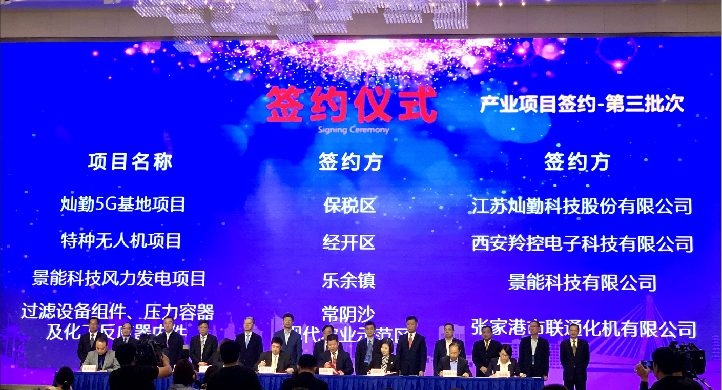 2019年11月2日上午,江蘇燦勤科技股份有限公司的“燦勤科技園”項目暨“燦勤5G基地項目”作為張家港重點項目之一,與保稅區管委會正式舉行簽約儀式,我司董事長朱田中先生受邀出席本次簽約儀式。